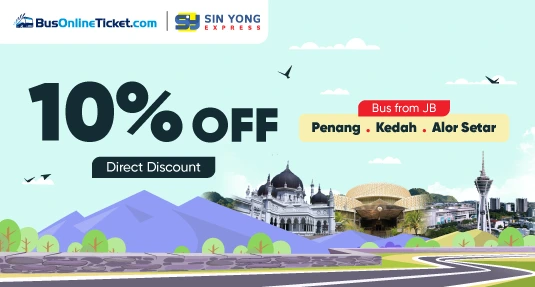 Sin Yong Express 精选座位 9-11 号享 10% 折扣,从新山出发前往北部多个热门城市。先到先得,立即预订!